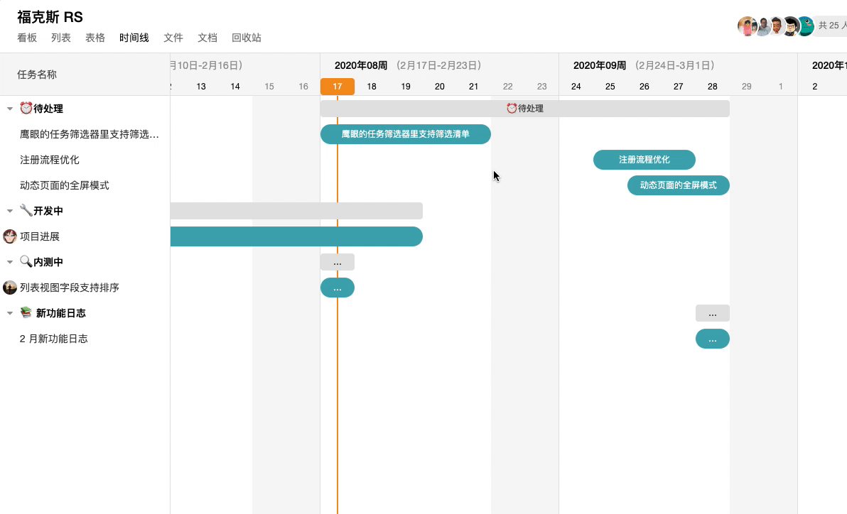 这样,项目管理者只要打开项目,就能看到所有任务对应的进度。如果项目的实际完成进度和规划的执行时间出现明显偏离,项目管理者可以采取行动来帮助同事解决困难,从而防范延误的风险。